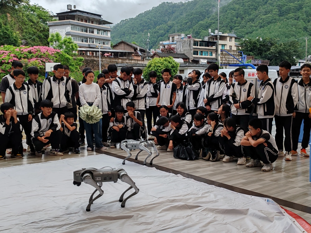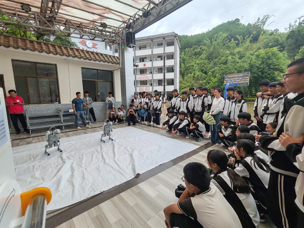 科普大篷车向德安乡中心学校师生们展示了众多集科学性、趣味性、互动性于一体的科普展品,涵盖了力学、电学、光学等方面的科学知识,“窥视无穷”、“无形的力”和“双曲狭缝”等十多件展品让人应接不暇,同学们在科普志愿者的引导下,有序地进行参观和体验,大家或仔细观察,或热烈讨论,脸上洋溢着兴奋和好奇,而机器狗表演的拜年、招手、跳舞和左转跳跃、向前空翻等多个动作,更是紧紧吸引住了学生们的目光,不时引发大家一阵陈欢呼声。