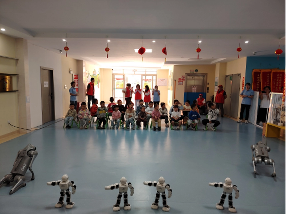 在欢快的音乐声中,一场精彩的机器人机器狗表演拉开了本次科普活动的序幕。这些高科技产品在科普辅导员的操控下,灵活地展示出各种姿势,时而跳跃,时而翻滚,赢得了在场学生们的热烈掌声和欢呼。