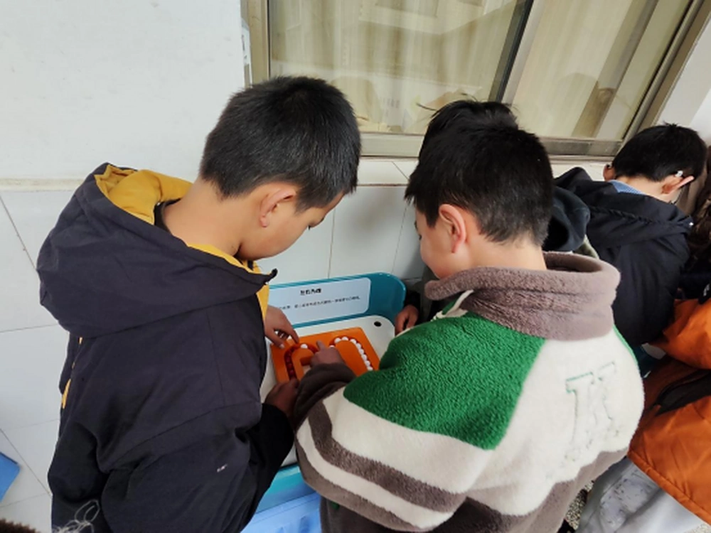 紧接着,科普大篷车智趣展品被一一呈现在学生们面前。这些展品中包括骏马奔腾、不同的颜色、六仙归洞等益智趣味展品,每一件都充满了神秘感和探索价值。学生们在这些展品前驻足观看,动手操作,脸上洋溢着兴奋和好奇的笑容。