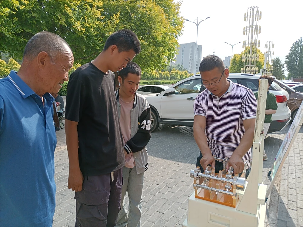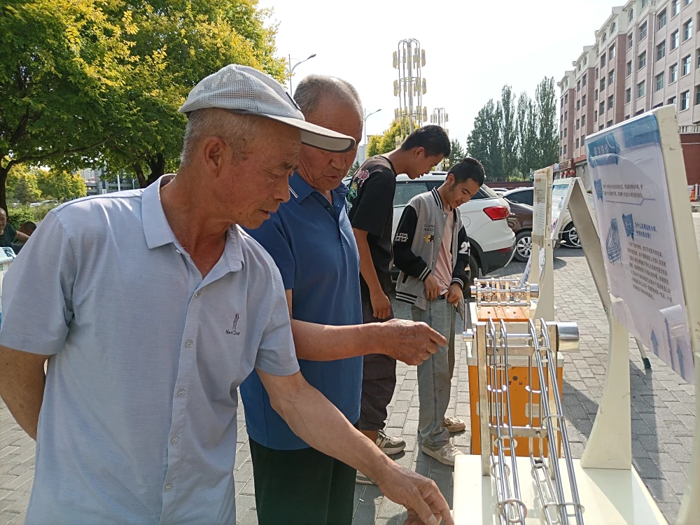 本次活动采用科普展板和科普展品和展板相结合的形式。 活动现场,科普大篷车满载着各类科普展品缓缓驶入小区 ,立刻吸引了众多居民的目光。现场共展示了10余件涵盖声、光、电、磁等多领域的互动展品,像“磁力传动摆”生动展现了磁力的奇妙作用,让居民直观看到磁力如何驱动摆锤有序运动;“最速降线”则以趣味的方式,让居民了解到物体在不同轨道下降速度的科学原理。这些展品一改往日科学知识的晦涩,以直观、有趣的互动形式,让居民亲身感受科学的魅力。