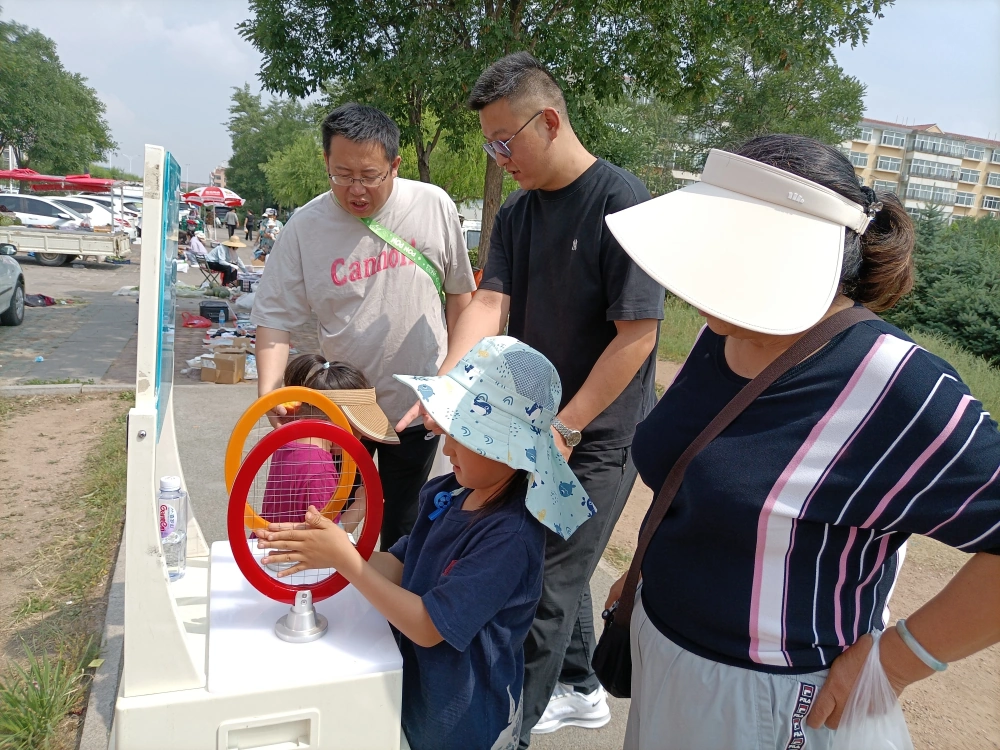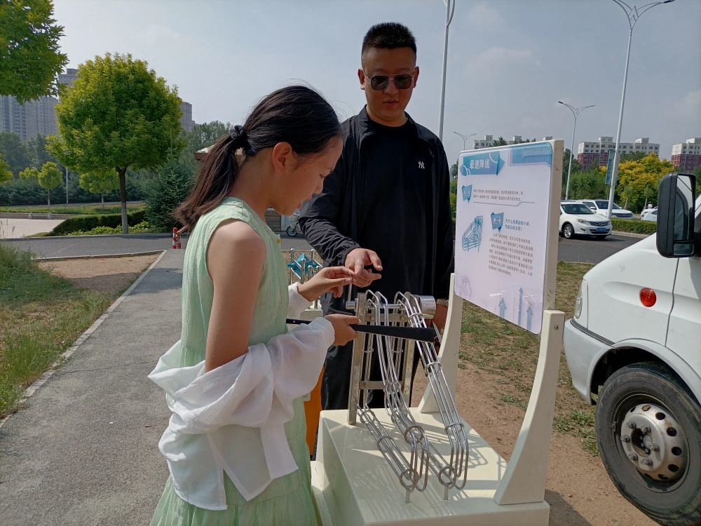 本次活动采取科普展品和宣传展板相结合的形式。活动现场,科普氛围浓厚。现场共展示了10余件涵盖声、光、电、磁等多领域的互动展品,包括懒惰环、最速降线、看谁跑得快、锥体上滚等。科技馆的科普辅导员穿梭在人群中,耐心的为大家讲解展品的操作方法以及背后蕴含的科学原理。从简单的力学知识,到较为复杂的电磁原理,都用通俗易懂的语言一一阐述,市民们认真聆听,还不时提出疑问,与辅导员进行互动问答。许多小朋友在家长带领下,穿梭于各个展品之间,亲自动手操作,眼中满是对科学的好奇与探索的渴望。