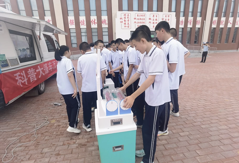 活动现场,科普大篷车展示了各类科普展品,涵盖物理、光学等多个领域。学生们通过亲手操作展品,直观感受科学原理,在实践中学习知识。同时,工作人员还进行了趣味科学实验演示,吸引众多学生围观学习。