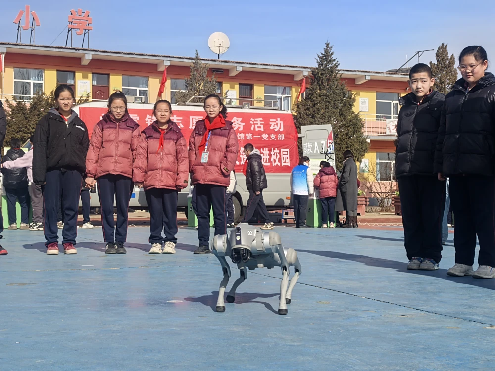 活动高潮出现在机械狗展演环节。内蒙古科技馆最新引进的机械狗成为全场焦点,它灵活地完成“比心”“拜年”等高难度动作,引发全场欢呼声。科技辅导员还向同学们介绍了机械狗的工作原理和应用场景,同学们听得津津有味,纷纷表示对未来的科技有了更多憧憬。