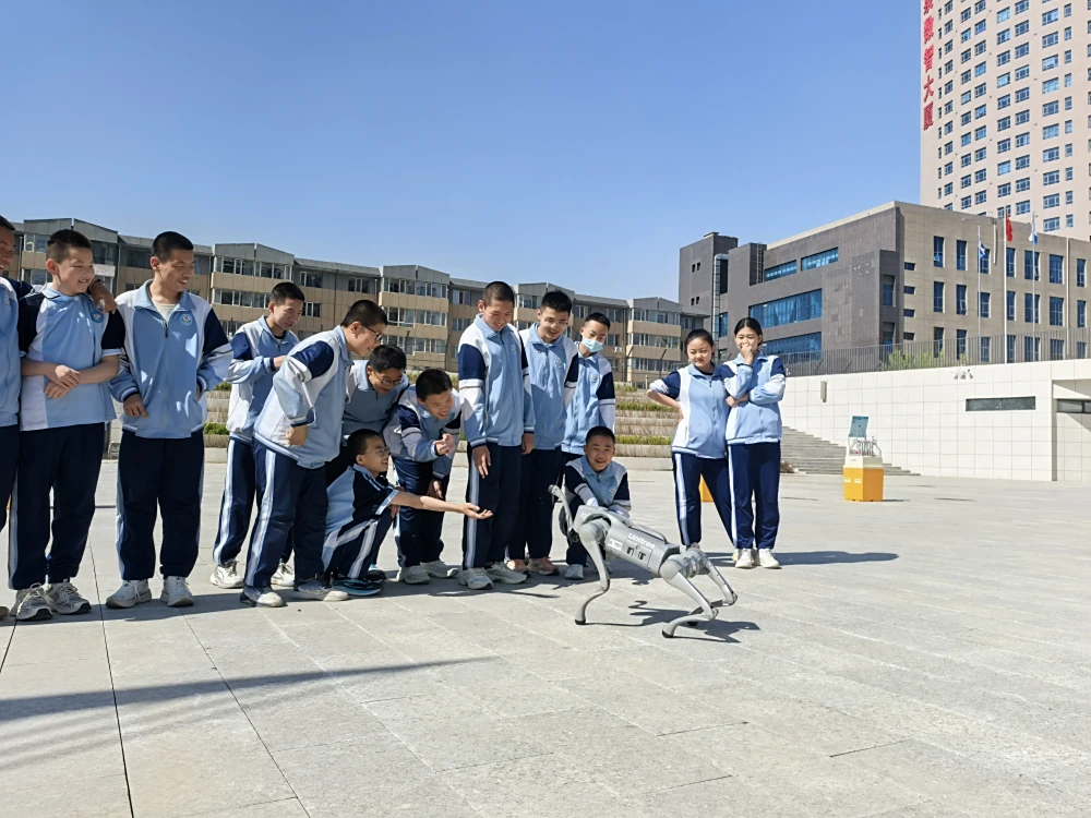 科技辅导员还向大家展示了“四足机器人”,在科技辅导员的操作下,“四足机器人”的表演将活动推向高潮,通过与学生“比爱心”“招手”等一系列互动动作,增强了广大师生的参与感。同学们在感受科技乐趣的同时也启迪热爱科学的思想和探究科学的能力。