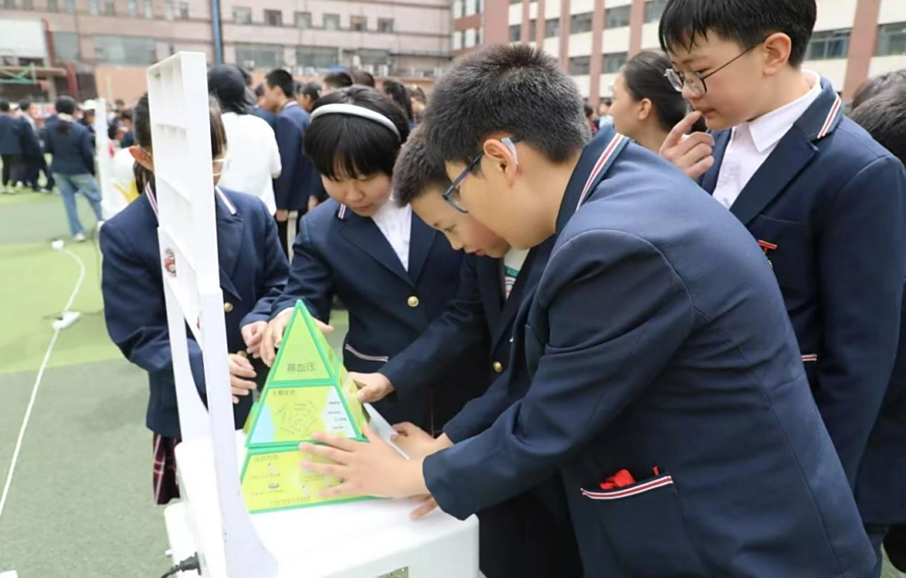 活动现场,科普大篷车宛如一座移动的科学城堡,各种新奇的展品一一呈现。“心肺复苏”模拟装置吸引了众多师生的目光,科技辅导员详细讲解心肺复苏的操作要点,并指导同学们亲身体验,让大家在实践中掌握这一重要的急救技能,明白生命科学的重要性 。“磁力传动摆”前,同学们目不转睛地看着几个金属摆球在磁力的作用下,有规律地摆动,感受着磁力的神奇和物理科学的奥秘。而“动画”展品则通过简单的机械原理,让一幅幅静止的画面“动”了起来,揭示了动画制作背后的科学,激发了同学们对影视制作和光学原理的兴趣。
