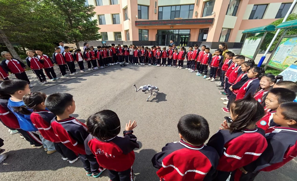 在活动现场科技辅导员还为学生带来一场别开生面的“四足机器人”互动体验课。这个特殊的宠物本事很大,它那一系列复杂的动作与互动式的表演,引发了孩子们阵阵欢呼喝彩,激动的心情溢于言表。机器人表演结合了科技与娱乐,不仅提供了视觉上的享受,也展示了现代科技的魅力和潜力。