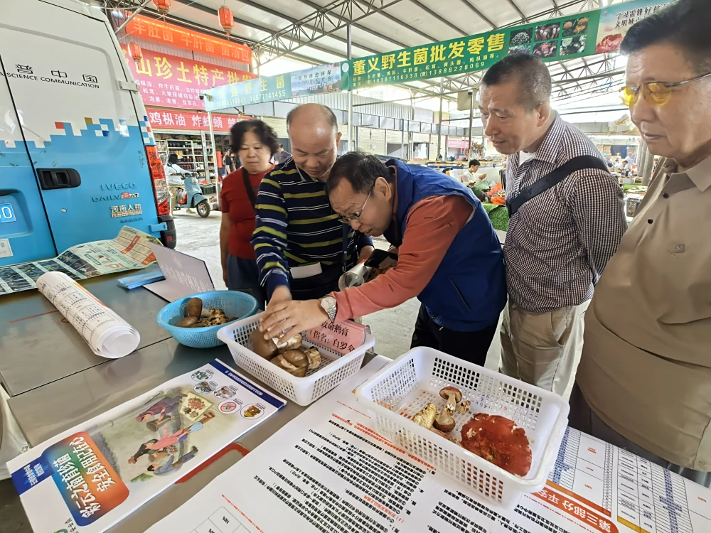 云南省宜良县科普大篷车驶入宜良县野生菌交易市场开展零距离宣传活动