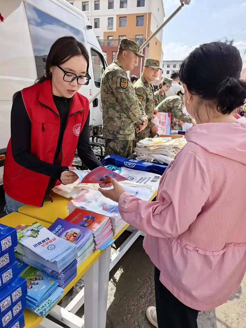 活动现场,东乌珠穆沁旗科协工作人员将防震减灾科普知识、家庭安全知识、消防安全知识、健康知识读本、身边科学杂志和印有科普宣传二维码的科普物品等科普实用材料分发给前来咨询的居民群众。