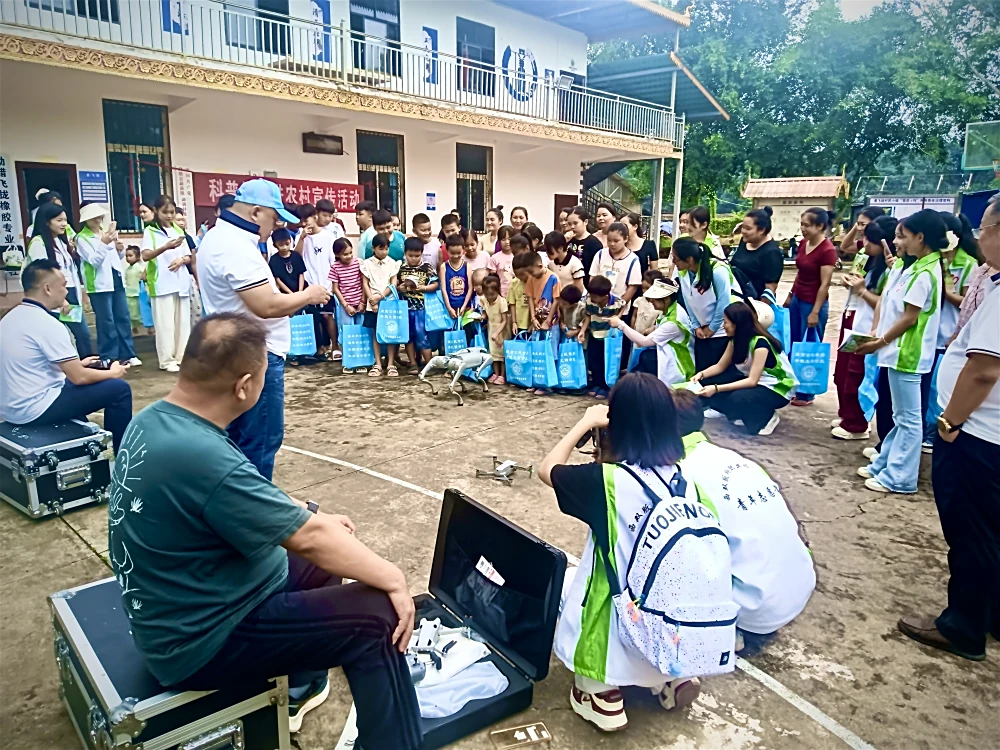 为深入学习贯彻习近平新时代中国特色社会主义思想、党的二十大和二十届三中全会精神,积极响应云南省关于大中专学生志愿者暑期文化科技卫生 “三下乡” 社会实践活动的号召,7月11日,西双版纳州科协、景洪市科协、勐腊县科协、西双版纳职业技术学院共同组织的 “走边关·科普大篷车联合行动” 走进勐腊县勐满镇,在曼飞龙村小组开展了一场集科技体验、文化传承与知识普及于一体的科普活动,以生动有趣的形式架起科学与边疆群众的 “连心桥”。