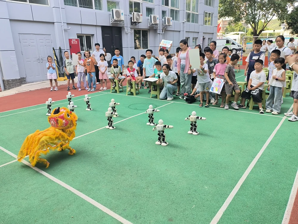 活动现场,科普大篷车展出的互动式科技展品吸引了孩子们的目光。通过“声光电磁”“力学探秘”等主题展项,学生们在动手操作中直观感受科学原理,激发探索热情。随后,活泼灵动的跳舞机器人随着音乐节奏翩然起舞,高难度动作引发阵阵欢呼;智能狮子狗表演则通过拟真互动,展示了人工智能与仿生技术的融合,将现场气氛推向高潮。