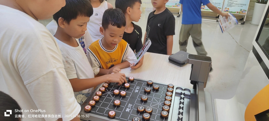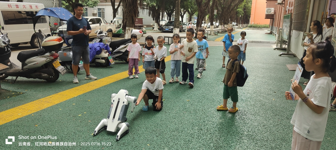 科普大蓬车车载展品、智能机器狗、VR虚拟现实、智能机器人、智能象棋等高科技产品,现场与青少年开展互动体验活动,更是将活动推向了高潮。灵动可爱的机器狗,仿佛拥有生命一般,灵活地穿梭在人群中,做出各种憨态可掬的动作;智能机器人则像是来自未来的伙伴,不仅能与人进行流畅的对话,还能翩翩起舞,展示着高科技的魅力;戴上VR眼镜,青少年们瞬间置身于一个奇幻的虚拟世界,或是在浩瀚宇宙中自由翱翔,或是在神秘海底与鱼儿共舞 。这些智能科技展品,让青少年们亲身感受到科技的神奇与力量,引领他们踏上奇妙的科技之旅,去探寻未来无限可能的精彩世界。活动内容精彩纷呈,现场气氛活跃热烈。