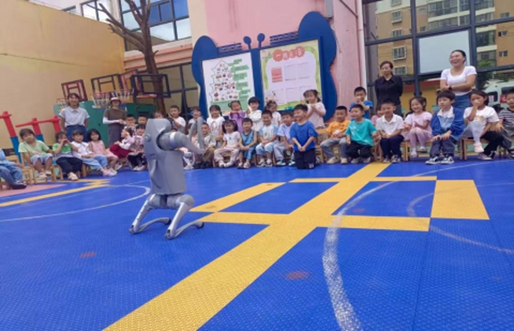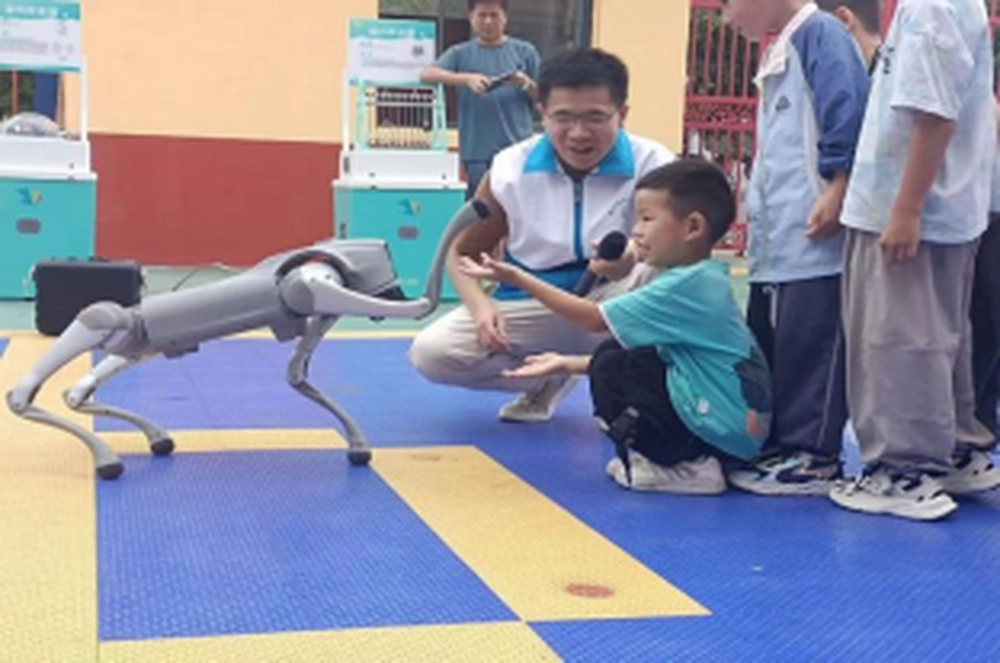 满载着神奇科学知识的科普大篷车瞬间吸引了孩子们的目光。陈列着各种有趣的科学展教设备,从仪器展品到智能机器人,无一不透露着科学的魅力。活动伊始,在小朋友们的热烈欢呼声中,机器人“小萌”和“小宁”进行各种仿人动作、舞蹈表演,还上演了一场精彩的拳击对抗赛,小观众们纷纷为自己支持的机器人加油助威,气氛十分热烈。随后,机器狗震撼登场上演的种种动作和舞蹈,同样赢得了阵阵掌声。其间,深受浓郁气氛感染的多位小朋友也勇敢登台,以当下网红“科目三”舞蹈对决现场人工智能机器人(狗)同台竞技,将活动推向高潮.....