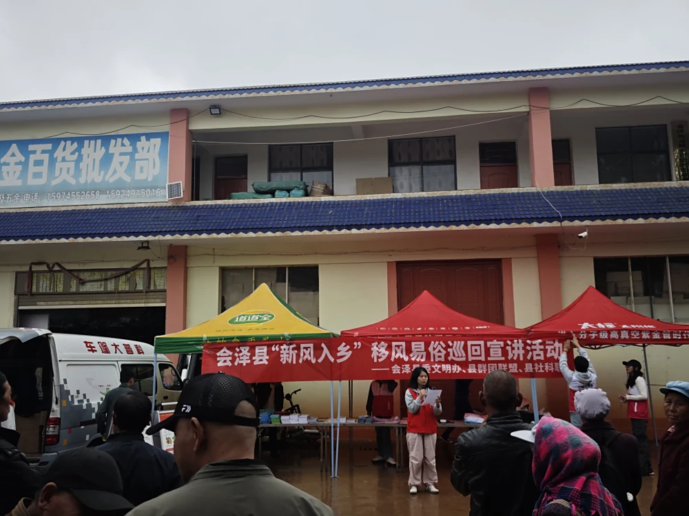 近日,由会泽县委文明办、群团联盟(县科协)、县社科联联合举办的“新风入乡”移风易俗主题巡回宣讲活动正式启动,移风易俗宣讲员和大学生志愿者到各乡(镇、街道),利用赶集日、群众会等场合广泛开展移风易俗宣传。