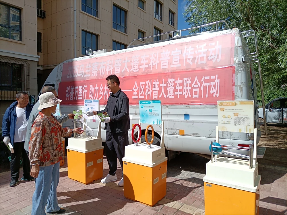 7月20日上午,内蒙古乌兰察布科技馆科普大篷车进社区活动开进祥和东方C区,将生动有趣的科普服务送到居民家门口。活动依托小区的生活场景,聚焦居民日常需求,通过互动体验、知识讲解等形式,让科学知识融入生活,吸引了小区内老、中、青、少各年龄段居民积极参与。