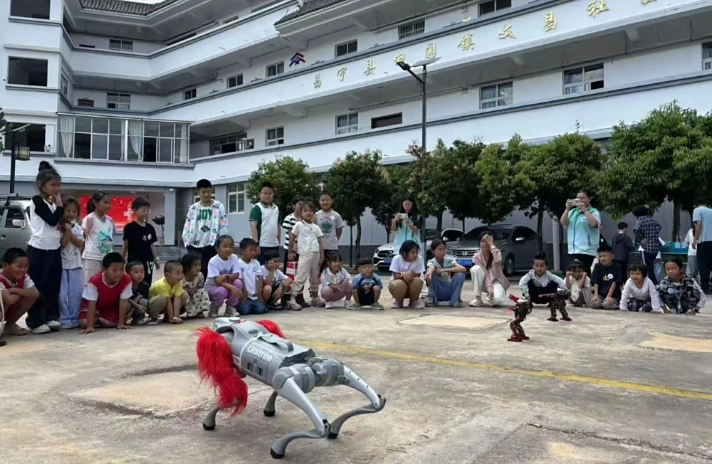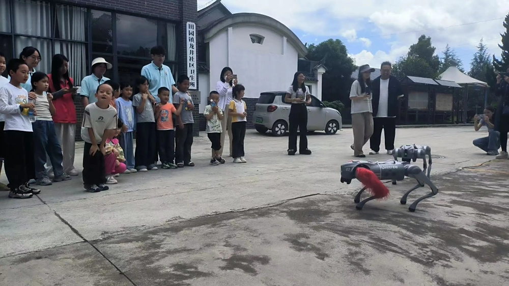 哇!机器人、机器狗来啦! 智能机器人的灵活舞蹈、仿生机器狗的趣味表演,瞬间点燃全场!孩子们围成一圈,眼睛发亮,欢呼雀跃,零距离感受人工智能的神奇魅力,心中种下科技的种子。
