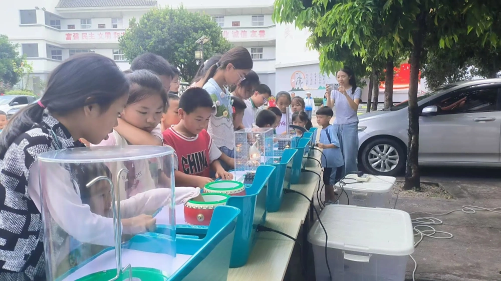 在文昌社区广场和龙井社区小花园,孩子们的笑声和惊叹声此起彼伏。他们兴奋地围观机器人表演,好奇地探索科普展具,认真地听“茶小青”的哥哥姐姐讲解,还踊跃提问、积极互动。返乡大学生志愿者们耐心十足,用知识和热情陪伴孩子们度过了一个充满科学趣味的下午。