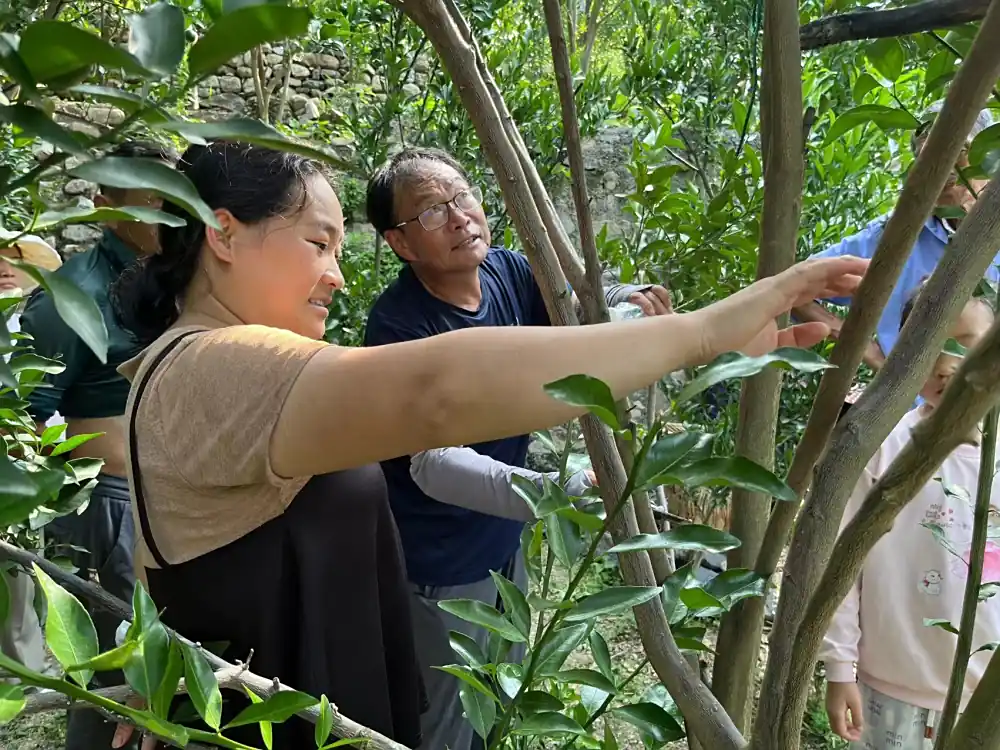 烈日果园内,专家主要以施肥管理、科学用药规范、修枝整形三点进行讲解,重点解决果农疏果不当、病害频发的问题。专家强调,橘树施肥需紧扣生长周期精准施肥,确保果树营养充足。针对夏季高发的蚜虫、果实蝇及致命性的柑橘黄龙病,着重传授生物防治、物理防治及科学用药策略,保障果品安全。修剪则要遵循“旺留枝、弱修枝”原则,优化树冠结构,改善园内通风透光条件,提升果实品质。