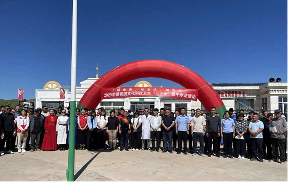 为深入学习贯彻习近平文化思想和习近平总书记关于“三农”工作的重要论述,将科技、文化和健康知识送到基层群众身边,进一步提升群众科学素养与健康水平,7月21日,镶黄旗科协参加旗委宣传部在巴彦塔拉镇呼日敦高勒嘎查党群服务中心举办的“感党恩、听党话、跟党走”— 2025年镶黄旗文化科技卫生“三下乡”集中示范活动。