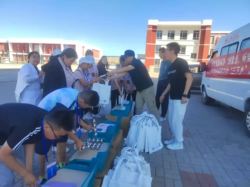 活动中,科普大篷车满载随车展具、科普物品及宣传册,通过直观有趣的互动形式,向学生们普及各类科普知识。现场放置的科普展具吸引了众多学生驻足体验,大家在动手操作中感受科学的魅力;工作人员还向师生们发放了科普宣传物品和科普宣传册,内容涵盖民族团结、卫生健康、数字素养、科学常识等多个领域,进一步拓宽了大家的知识面。