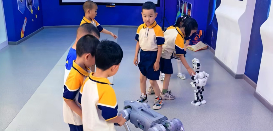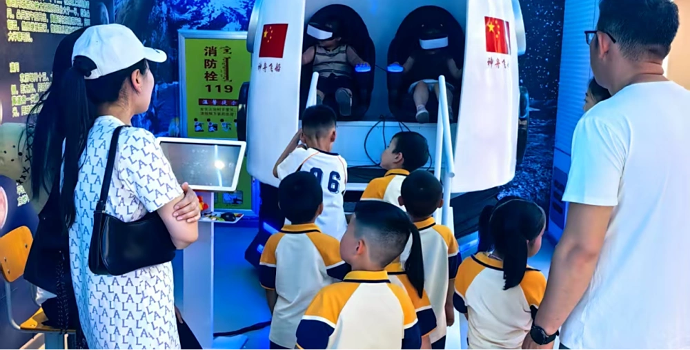 活动当天,孩子们怀着无比兴奋和好奇的心情,在老师和科协工作人员的带领下来到科技馆,充满科技感的场馆布置和新奇有趣的展品瞬间吸引了孩子们的目光,他们迫不及待地想要一探究竟,看着展示的机器人与机器狗,孩子们的眼睛里闪烁着好奇与兴奋的光芒。最让小朋友们兴奋的环节,当属VR游戏体验。孩子们沉浸在VR带来的奇妙体验中,感受科技魅力。