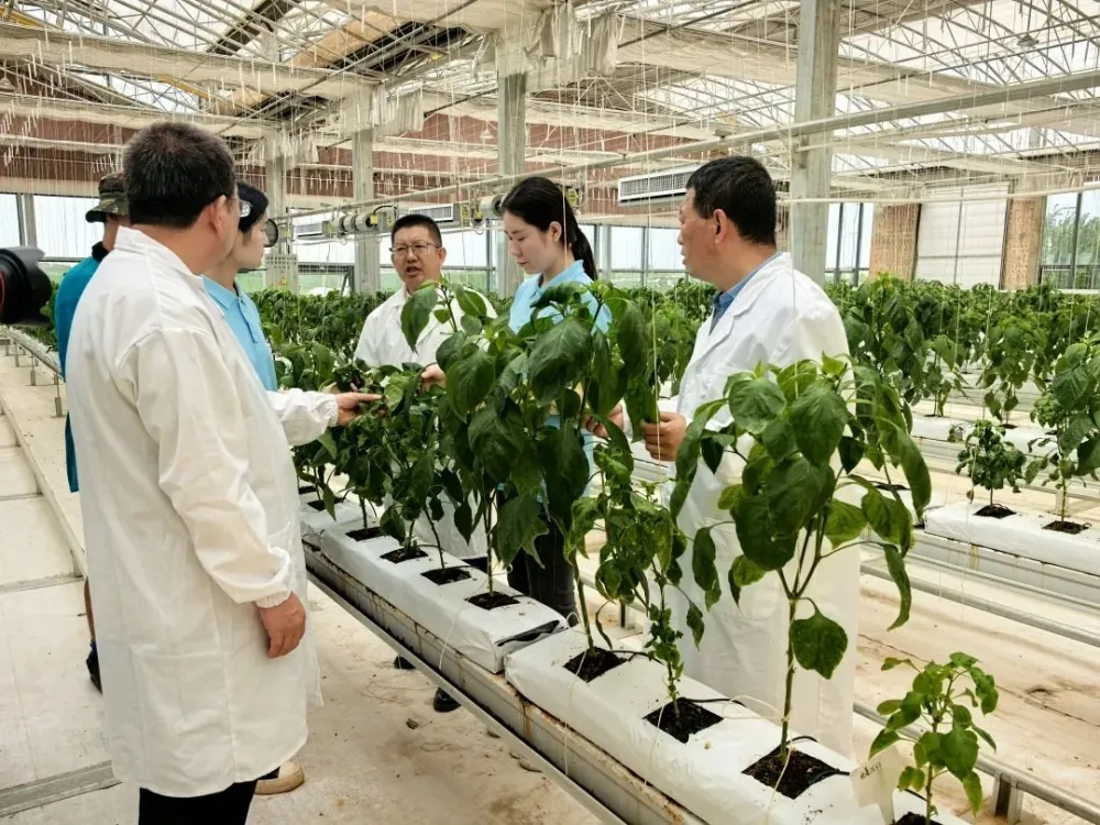 随后,辣椒培育专家前往辣椒科技小院,与辣椒科技小院研究生团队在试验田和种植区仔细查看了辣椒的生长态势,对辣椒的株型整理、水肥管理等提出了具体的指导意见。专家与研究生团队、小院的技术人员就辣椒种植数据监测、品种改良等工作进行了深入交流,分享了最新的研究成果和实践经验。