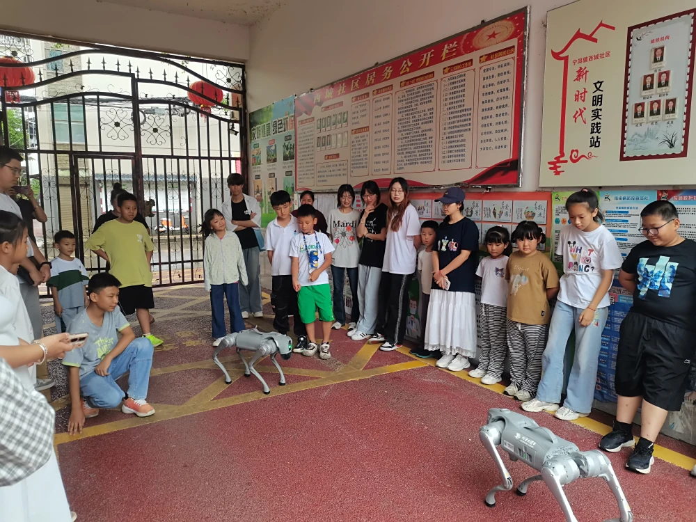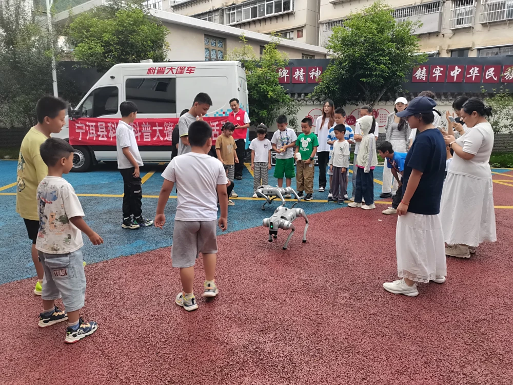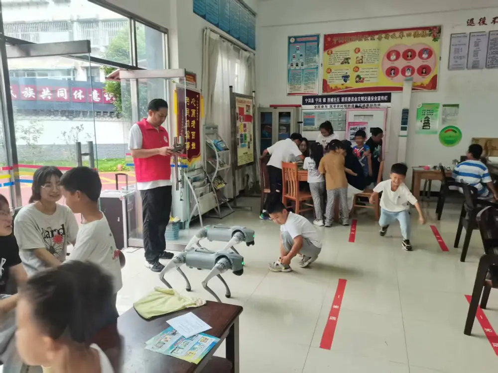 在活动现场,宁洱县科协的科普志愿者用“理论+实践”的讲解模式,以生动的语言为社区居民尤其是学生们讲解科学原理,引导学生们亲手操作多种科普展品,给大家的酷热暑期生活带来一场新鲜好奇的感受和体验,迈出了小朋友们探索科技奥秘的第一步。随着两只可爱的机器狗的亮相,活动进入了高潮,受到了孩子们的极大关注,纷纷围着机器狗发问:“小狗小狗,你会跳舞吗?”“再来一个空翻”,面对孩子们连珠炮般的天真提问,机器狗灵活摆动四肢,不断作出各种动作予以回应,在欢声笑语的互动中,人工智能的奇妙魅力悄然播撒在孩子们心间,现场洋溢着此起彼伏的惊叹与欢笑声。