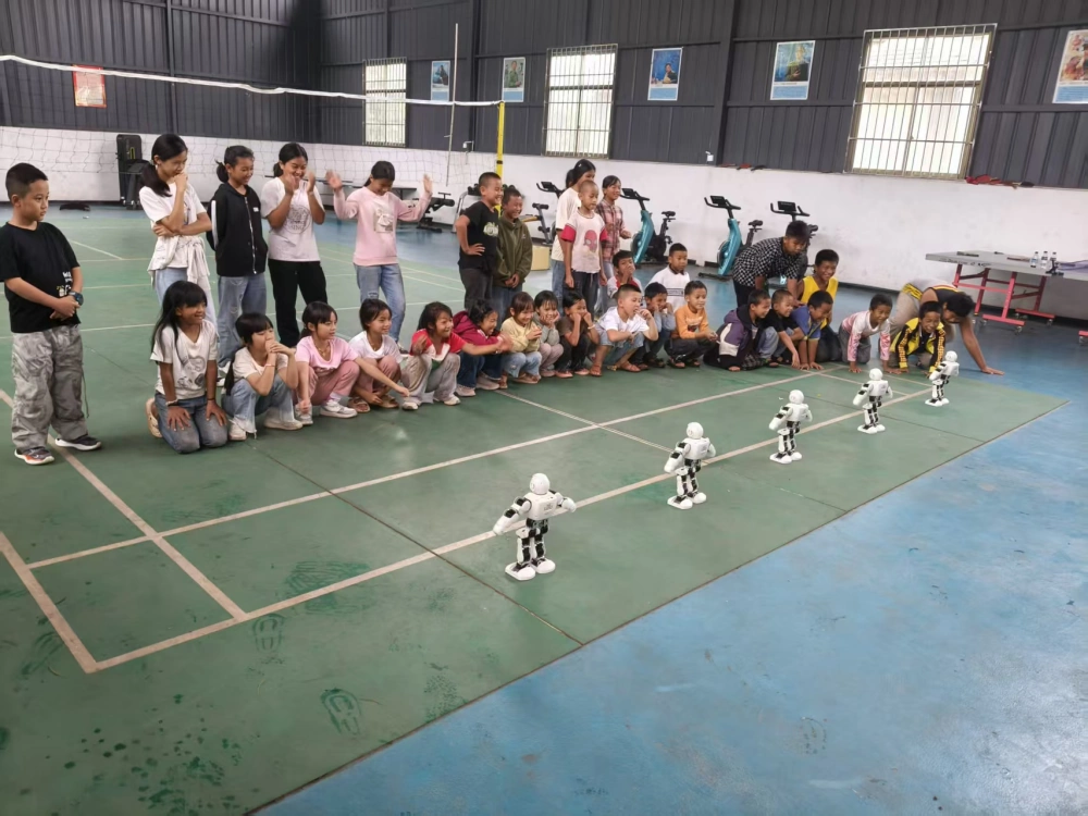 科普大篷车展示了一系列富有吸引力的科普展品,学生满怀激情地参与了互动游戏,“机器狗、机器人”更是受到了小朋友的热捧,俏皮的“机器狗”时而趴下,时而起身,时而追逐着在场的同学们,在遥控操作下,“机器人”灵活地做出“踏步”“奔跑”等动作,展示着优美的“身姿”,引得大家连连拍手称奇。