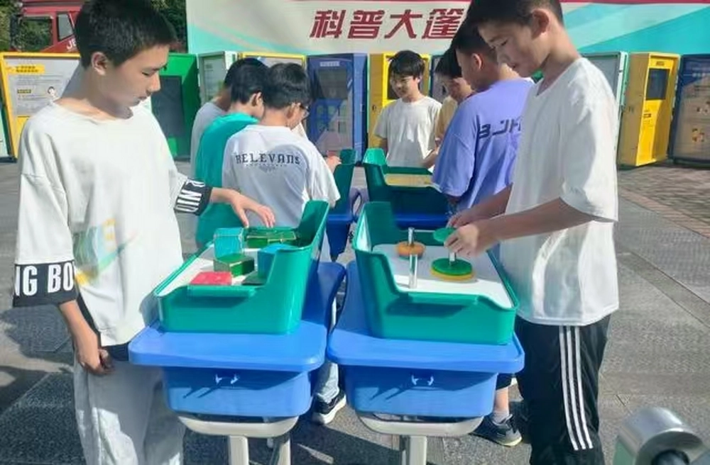 科普大篷车刚抵达广场,丰富多样的互动展品便成为焦点。现场带来了声驻波、声光反应测试、无皮鼓等充满趣味与奥秘的科学装置。从基础物理原理到前沿科技成果,丰富多样的科普内容吸引了众多居民驻足。