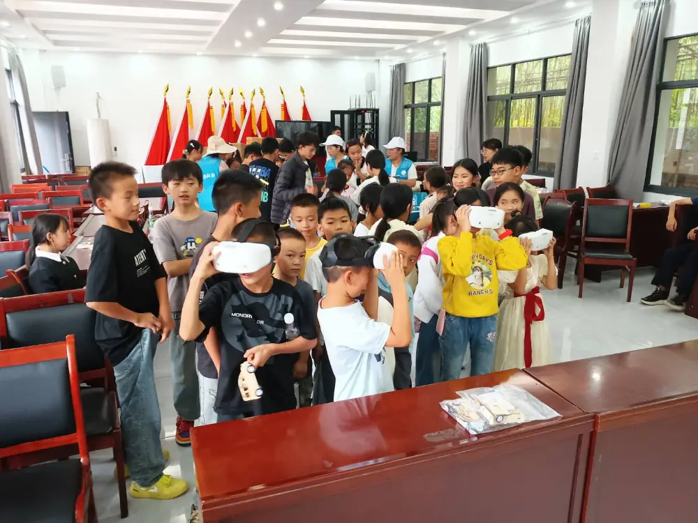随后,科普大篷车满载“科技宝藏”,带来了一场集趣味与知识于一体的科技盛宴。VR眼镜带来的沉浸式科技体验,让孩子们仿佛置身于浩瀚宇宙、神秘海底,直观感受着科技的神奇魅力,引得孩子们发出阵阵惊叹。思维训练教具则成了孩子们的“心头好”,孩子们三五成群一起动手拼接、推理闯关,在玩闹中锻炼了逻辑思维和动手能力,欢声笑语不断。最受欢迎的当属机器狗,当它迈着稳健的步伐走向人群时,瞬间引来一阵阵欢呼,大家围在一起观看机器狗表演,与机器狗提问、互动,在近距离接触中感受人工智能的魅力,埋下探索科技的种子。