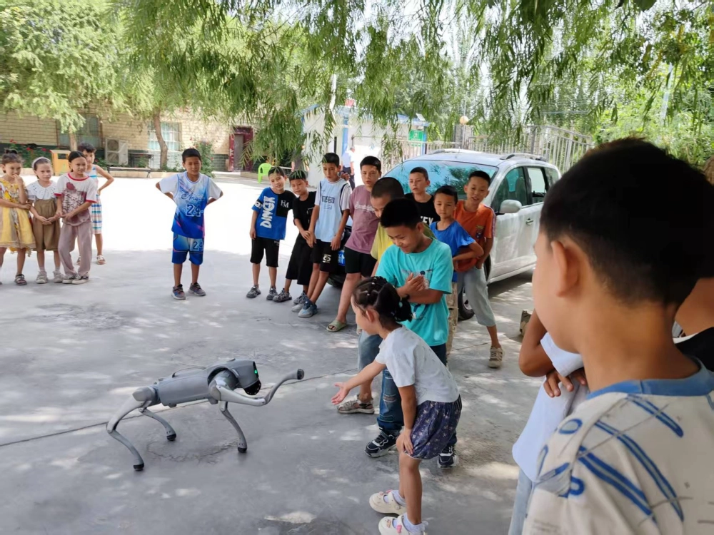 最后,机器狗跳舞表演把活动氛围推向了最热烈的高潮。灵活可爱的机器狗随着音乐欢快舞动,与小朋友们积极互动,握手、转圈等动作萌态十足,激发了孩子们对人工智能的浓厚兴趣,现场充满了欢声笑语。