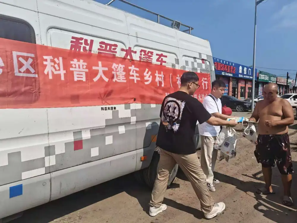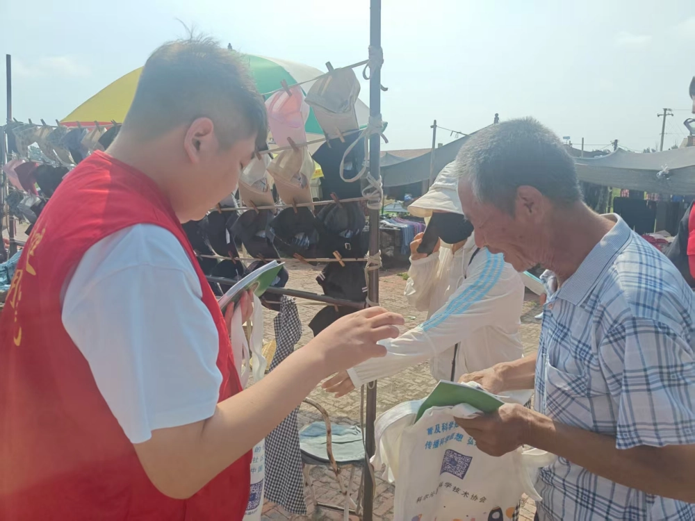 活动现场,正值钱家店镇集市伊始,志愿者们穿梭在赶集的人流中,递出的“科学礼包”精准对接群众需求:农忙时节必备的农业技术指南、老年人易懂易记的健康养生口诀、孩子们爱不释手的趣味科学读本,让赶大集的乡亲们顺手“捎”走实用知识。
