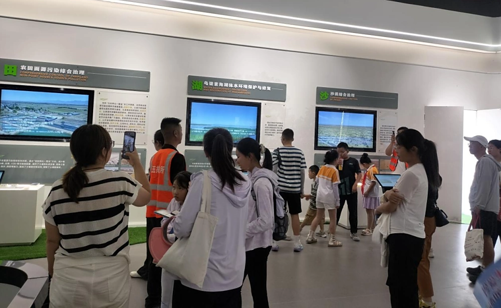 讲解过后,工作人员又带领青少年及其家长走进乌梁素海湿地治理中心进行参观。治理中心系统展示了湿地从生态恶化到逐步修复的全过程,包括水质改善、生物多样性恢复等具体成果,孩子们直观感受到了生态保护的实际成效。同时也更深刻认识到生态保护与人类活动的密切关系,强化了“绿水青山就是金山银山”的理念。