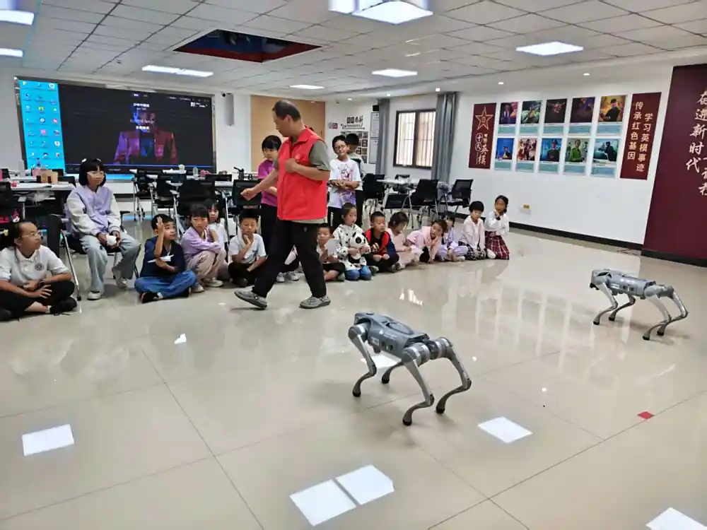 2025年7月25日上午,麒麟区科协的科普志愿者携带机器狗、VR眼镜等科普展具到潇湘街道党群服务中心开展科普服务活动。