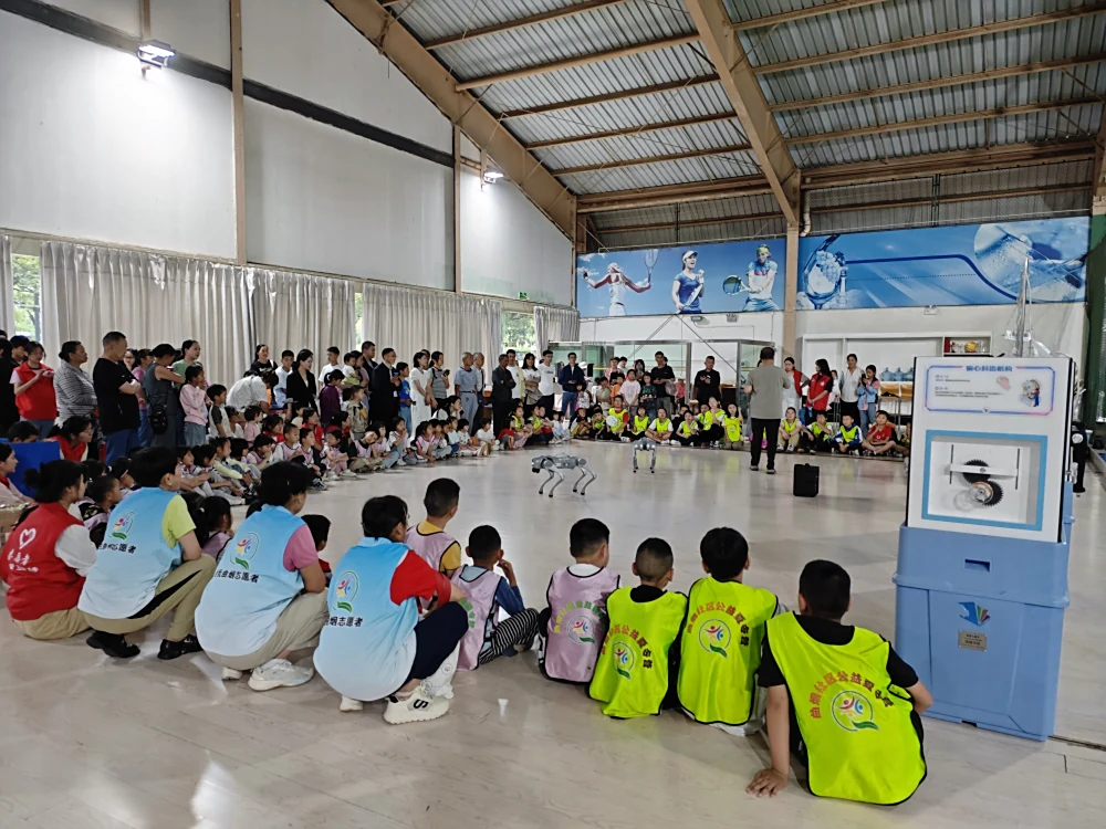 麒麟区科协科普志愿者展示了机器狗的基础动作后,随机选取了现场的小朋友进行互动,指导他们操控机器狗完成动作,给小朋友们提供了接触先进科技产品的机会。