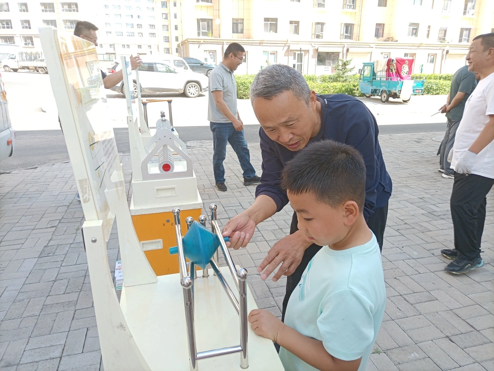 活动现场,科普大篷车满载着各类科普展品缓缓驶入小区 ,立刻吸引了众多居民的目光。现场共展示了10余件涵盖声、光、电、磁等多领域的互动展品,像“最速降线”以趣味的方式,让居民了解到物体在不同轨道下降速度的科学原理。这些展品一改往日科学知识的晦涩,以直观、有趣的互动形式,让居民亲身感受科学的魅力。许多小朋友在家长带领下,穿梭于各个展品之间,亲自动手操作,眼中满是对科学的好奇与探索的渴望。