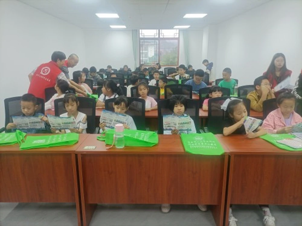 在防溺水讲座中,参加公益课堂的授课老师通过真实案例讲解、现场演示等方式,向孩子们详细介绍了溺水的危害、易发生溺水的地点以及防溺水“六不准”等核心知识。同时,摒弃传统说教模式,将知识点融入游戏与演示中。以抢答赢奖品的方式,加深对防溺水知识的记忆;在模拟场景中学习“呼救要大声、伸手找漂浮物”等自救技巧,让孩子们在互动中掌握实用技能。讲座结束后,科普志愿者向孩子们发放了防溺水、道路交通安全宣传资料和趣味科普知识小册子、环保袋等宣传品。