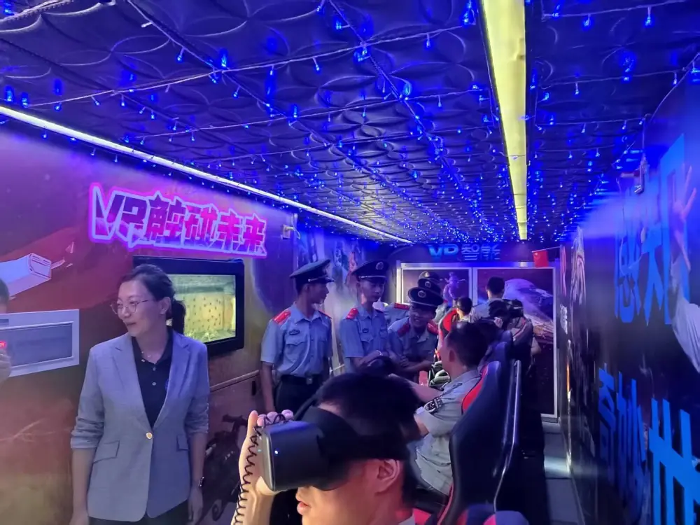 戴上VR眼镜,官兵们通过虚拟现实技术,“穿越”到深海、太空等场景,身临其境地感受了科技带来的强烈震撼,这种沉浸式体验让科技的感知更加真实和立体,大大提升了大家对科技的认知和理解。