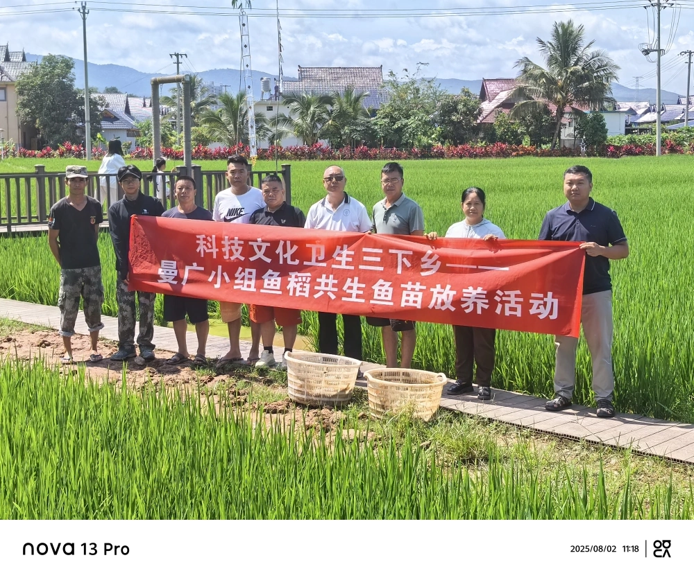 为深入贯彻落实乡村振兴战略,扎实推进科技文化卫生 “三下乡” 活动,8月2日,勐腊县科协联合县水产技术推广中心、勐捧镇人民政府到勐哈村委会曼广村小组开展了鱼稻共生鱼苗放养活动,旨在推广生态农业模式,助力农民增产增收,丰富农村精神文化生活,提升村民健康意识。