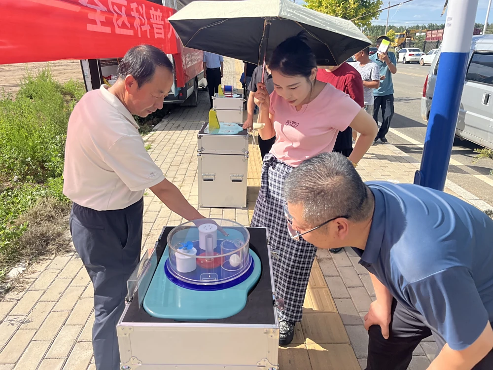 活动现场精心布置了多件便携式科普互动展品,涵盖声光电磁、力与机械、健康生活等多个领域。通过近距离的触摸与观察,深奥的科学知识变得生动可感、趣味盎然,激发了在场群众,尤其是青少年们浓厚的科学探索兴趣。崭新的智能机器人展示区更是成为了全场的焦点,孩子们兴致勃勃地围观,惊叹于科技的神奇魅力。同时,工作人员向现场群众免费发放了精心编印的科普知识图册,内容贴近生活、通俗易懂,成为大家带回家的“科普宝典”。