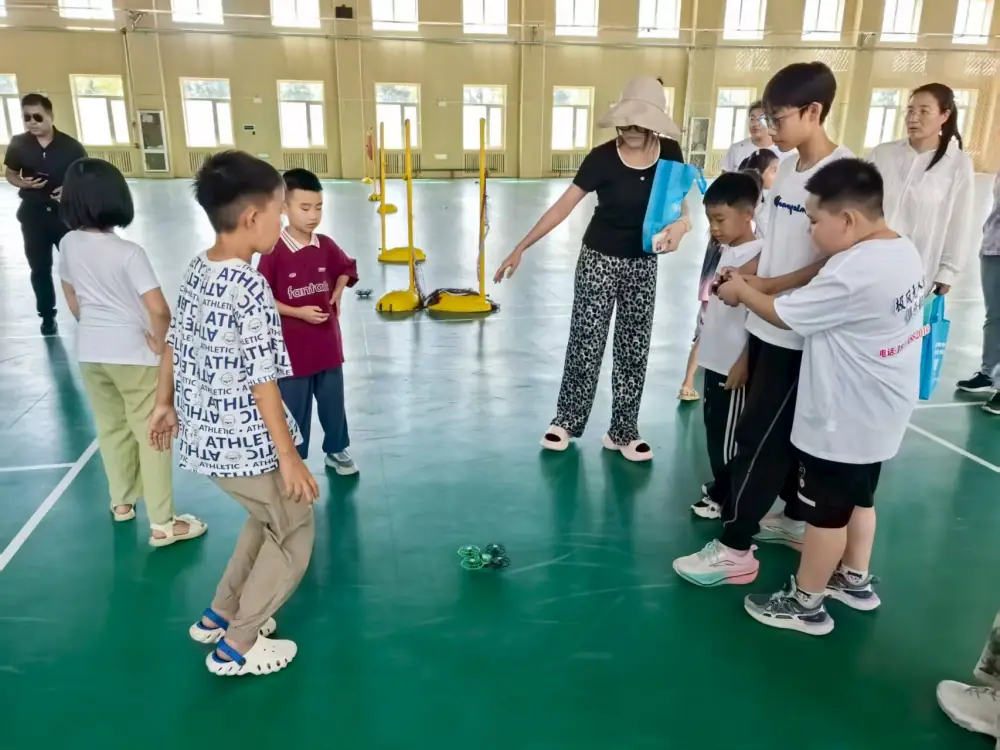 在十小体育馆青少年们现场体验了“空气炮”、马德宝半球实验、人工智能自动浇花系统、摩擦的力、智能电风扇、无人机穿越飞行等科技实验活动。