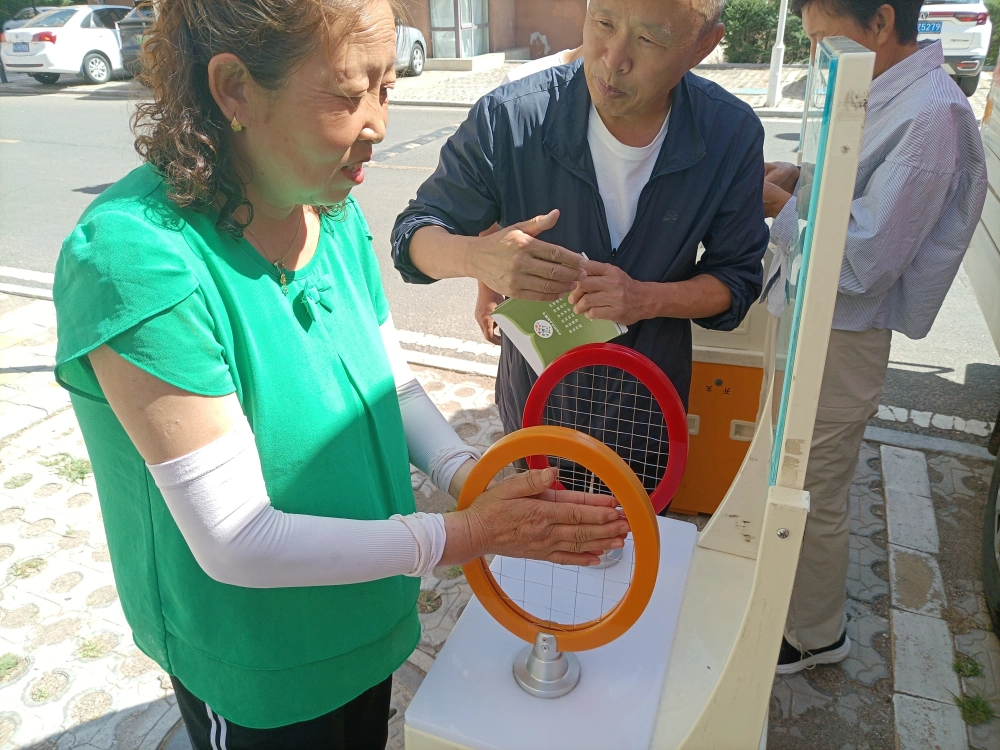 本次活动以悬挂科普宣传条幅、陈列宣传展板、发放科普书籍为主要形式。活动现场,科普大篷车宛如一座移动的科技馆,一亮相就吸引了众多居民的目光。车舱打开,琳琅满目的科普展品有序陈列,居民们纷纷围上前来,驻足观看。“磁力传动摆”这件展品备受关注,一排金属摆锤在磁场的作用下,无需接触就能同步摆动,生动展示了磁场的非接触力与能量传递原理,引得居民们阵阵惊叹。科普辅导员在旁边耐心讲解其中的科学原理,居民们认真聆听,仔细观察,不禁感叹科学的奇妙。此外,还发放了关于食品安全方面的科普书籍,科普辅导员还针对居民关心的日常科学问题逐一解答,让科普知识贴近生活。