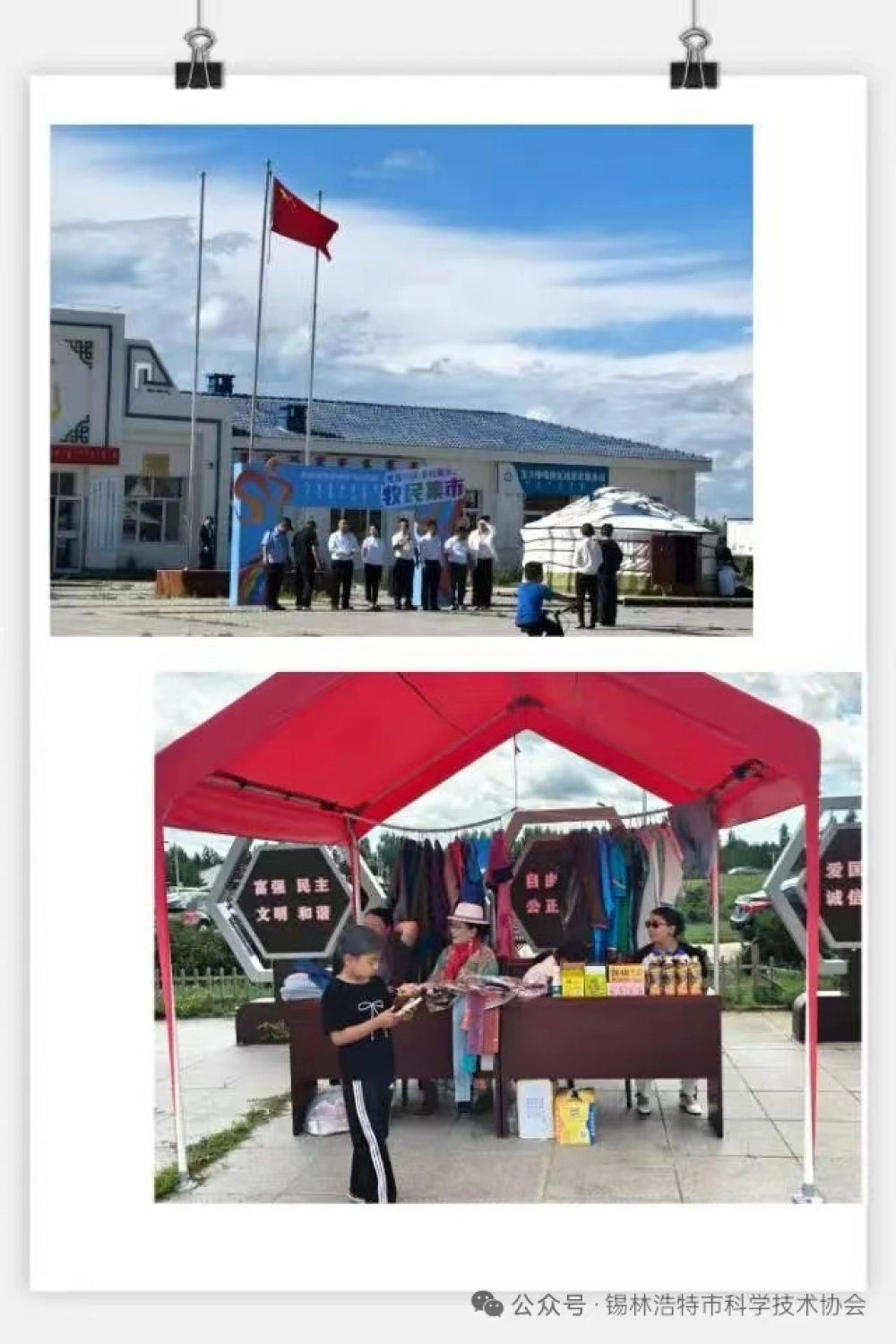 为深化党建引领作用,助推乡村产业发展,8月8日,锡林浩特市科协积极响应朝克乌拉苏木“党建引领 + 乡村振兴 + 牧民集市”活动号召,组织科普志愿者走进宝力格嘎查牧民集市。