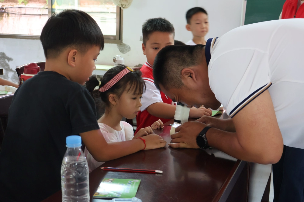 活动二:“显微镜下的世界”体验。孩子们通过显微镜观察微观事物,近距离感受平时看不到的细节,开启对自然科学的好奇之门。