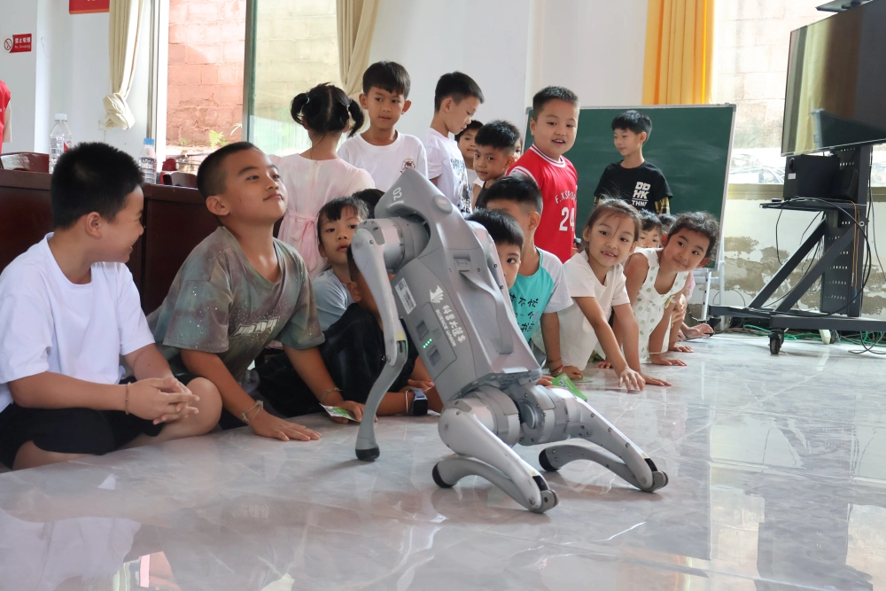 活动三:机械狗互动展示。科普志愿者详细讲解机械狗的原理及应用场景,随着机械狗完成跳跃、翻滚等动作,现场欢呼声不断,让孩子们直观感受人工智能的奇妙。