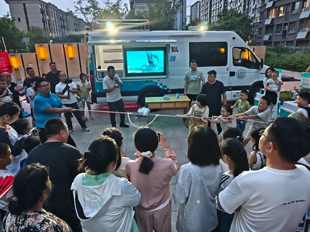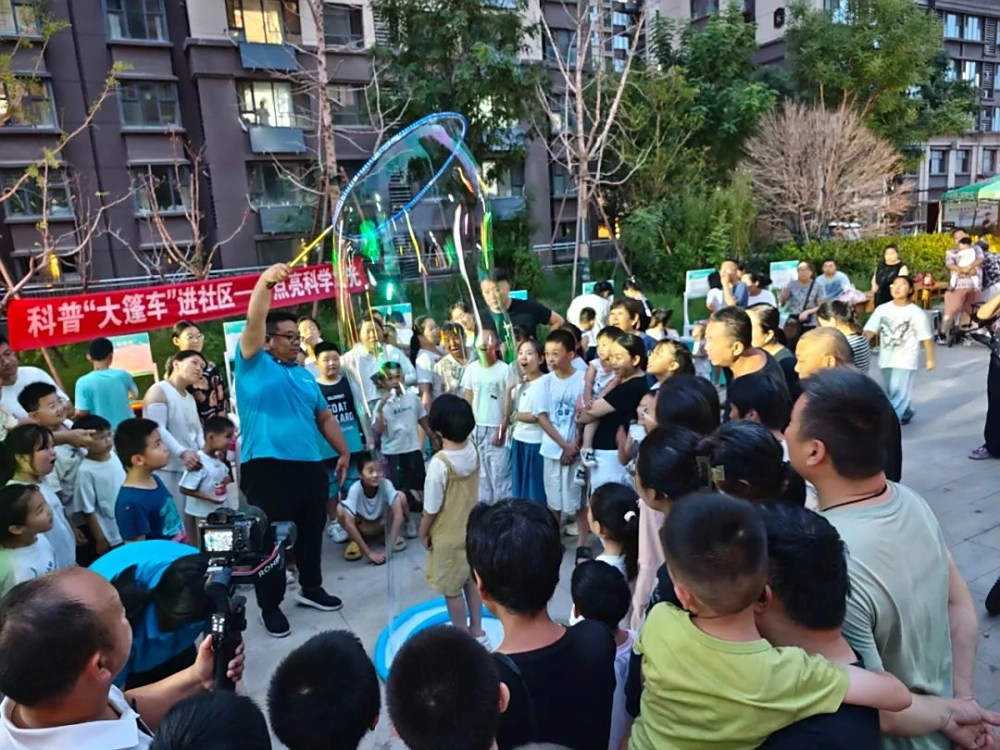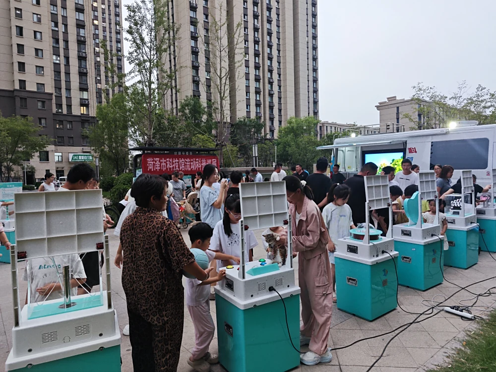 为深入推进文化社区建设,丰富青少年暑期精神文化生活,普及科学知识,激发探索热情,8月10日傍晚,文化惠民的生动实践在菏泽市牡丹区南城街道张楼社区荣华府小区精彩上演。牡丹区南城街道联合菏泽市科学技术协会、菏泽市科技馆、牡丹区科学技术协会共同打造了“科学进社区,科普惠万家”主题活动,将优质的科普资源直接送到居民“家门口”,为文化社区增添了浓厚的科技色彩,也为辖区的孩子们带来了一场别开生面、寓教于乐的科普盛宴。