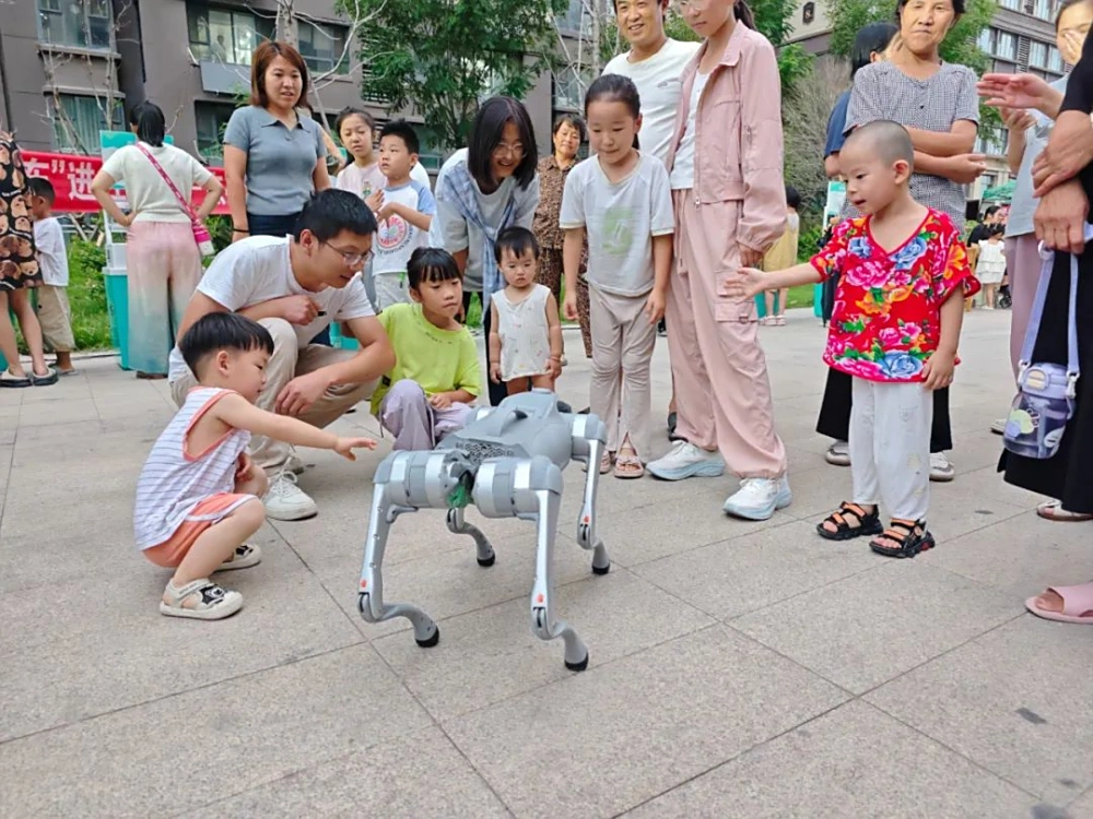 科技感十足的机器狗一亮相,便成为全场瞩目的焦点。它灵动地响应指令,精准完成跳舞、握手、翻滚等高难度动作,更与孩子们亲切互动,引发阵阵惊叹与欢笑。这不仅展示了人工智能与机器人技术的飞速发展,更像一颗颗未来的种子,悄然播撒在孩子们的心田,激发着他们对未来科技的无限向往。