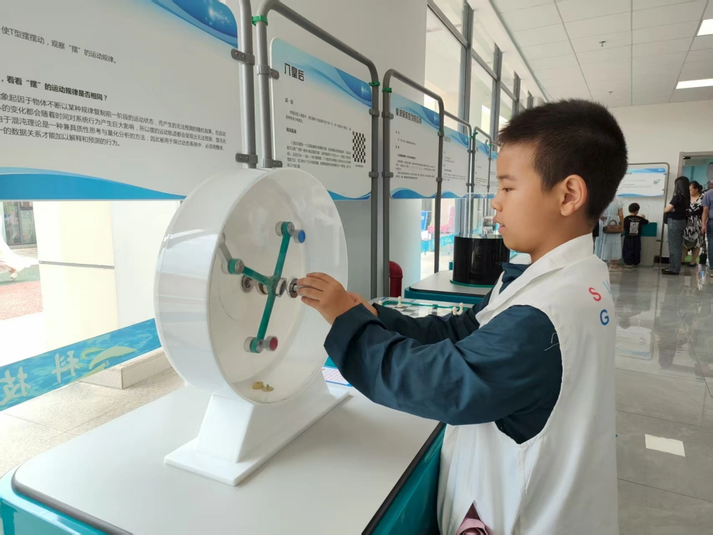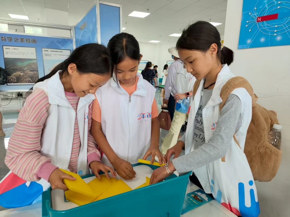 随后,师生们来到澄江市科技馆,在科技体验厅开启了一场奇妙的“数学探秘”。这里的“万物皆数”数学专题展集声光电于一体,133件展品涵盖“数学之史”“数学之美”“数学之用”“数学之趣”四个分展区,让抽象的数学变得可触可感。