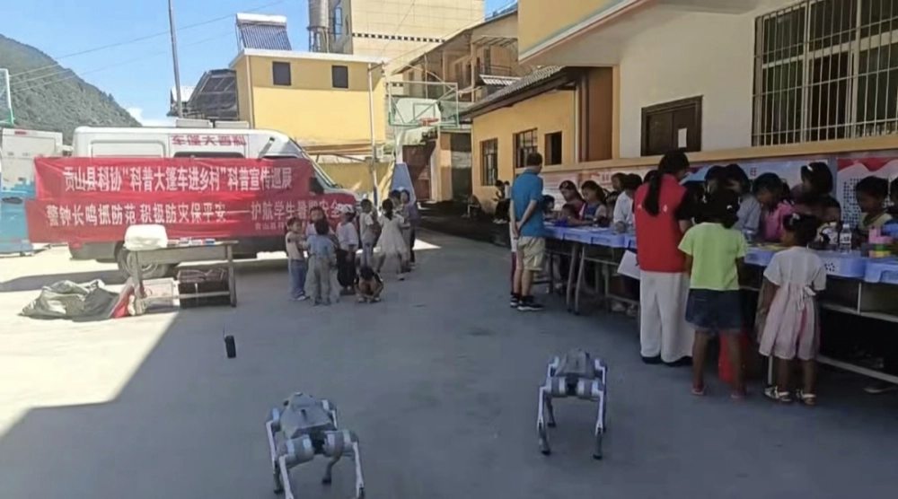 另外,县科协为孩子们带去了一场生动的暑期科普知识活动,以“警钟长鸣抓防范,积极防灾保平安——护航学生暑期安全!”为主题,工作人员耐心地为大家讲解每件展品的操作方法和科学原理,热情鼓励大家动手尝试。孩子们兴奋地穿梭在展品之间,有的戴上VR眼镜,为眼前图案的神奇变化连连惊叹,有的和机器狗握手互动,脸上洋溢着笑容,还有的专注益智游戏,在动手的过程中探索逻辑的奥秘。