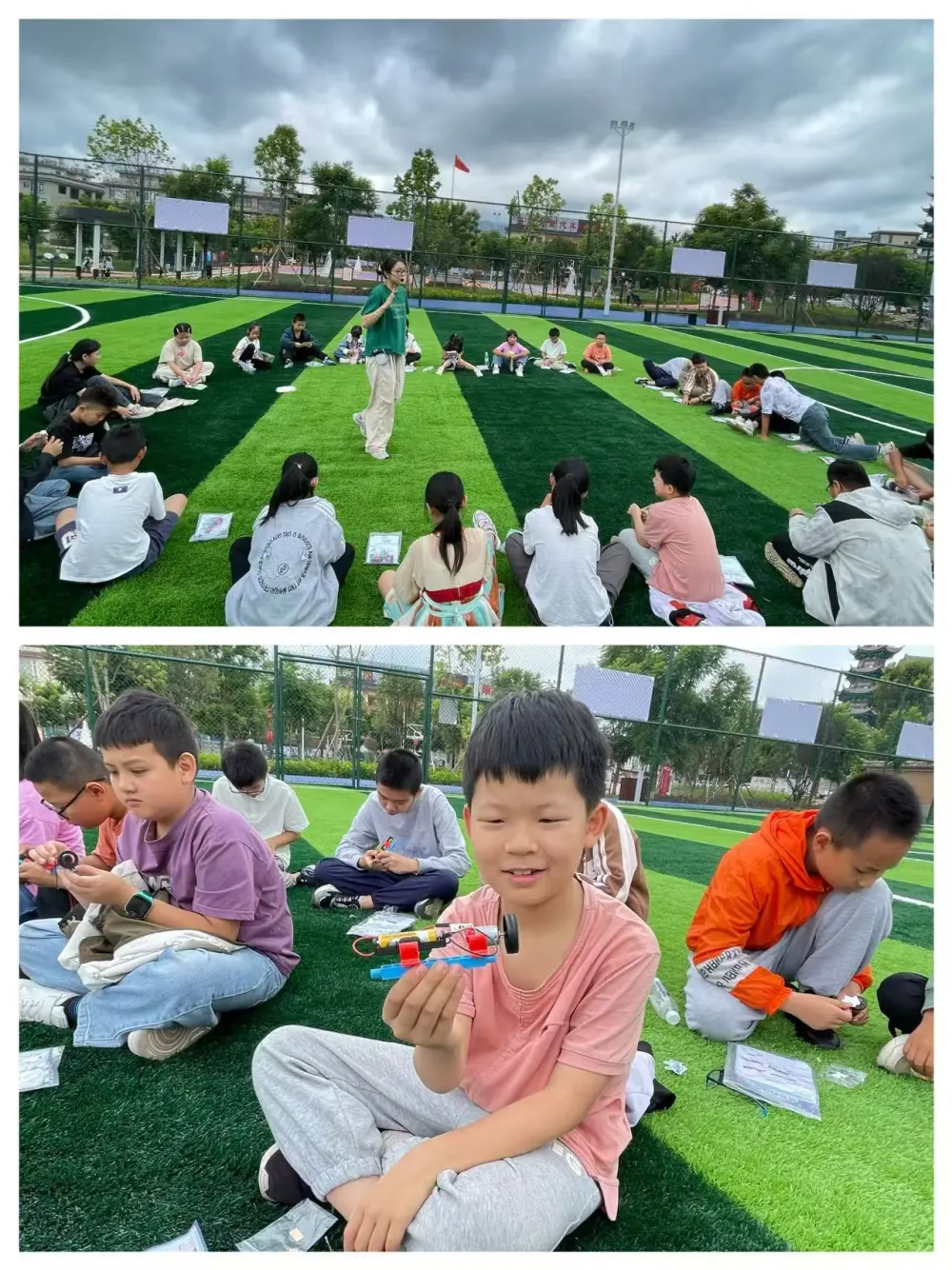 最令人期待的“水火箭制作与发射”环节中,同学们分组合作,从搭建箭体、安装尾翼到调试水量,全程亲自动手。在科普志愿者的指导下,大家不仅理解了“反冲力推动火箭升空”的力学原理,更在亲手制作的水火箭呼啸着冲向天空时,爆发出阵阵欢呼声,成就感与对科学的向往,在每个同学心中悄然蔓延。