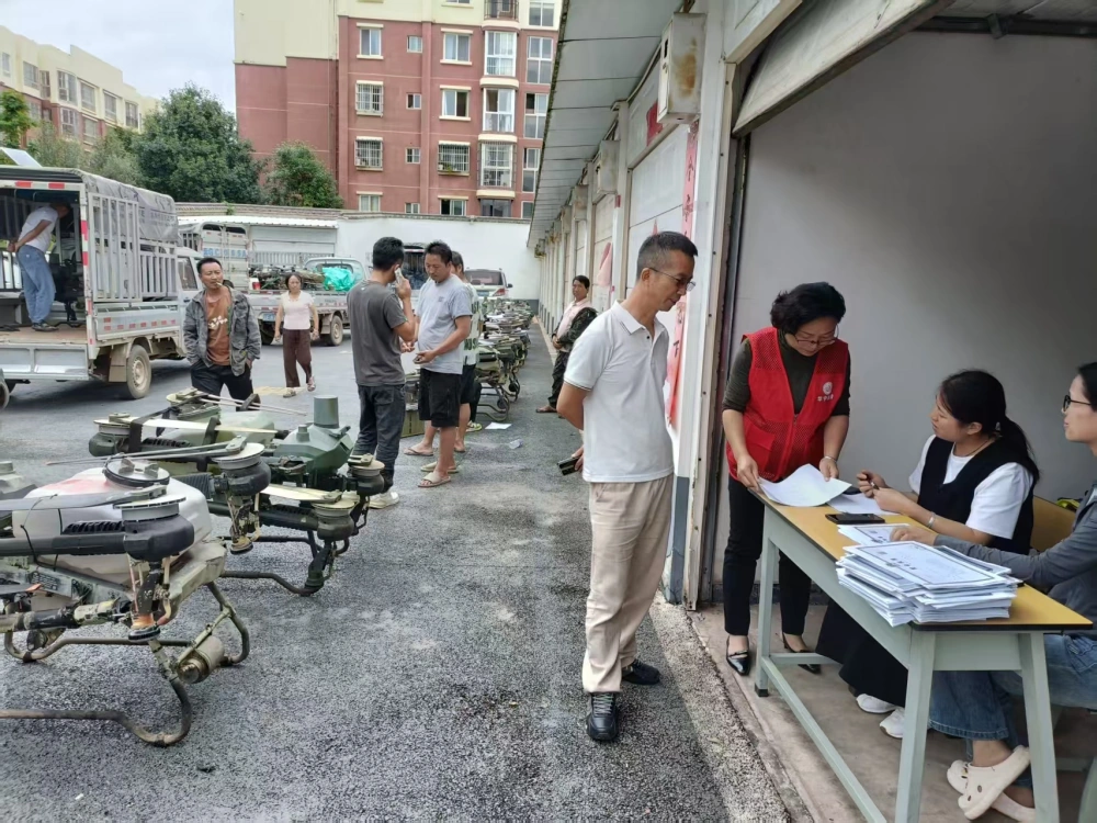 在核验现场,云南省玉溪市华宁县科普大篷车志愿者详细向县农机管理站技术人员咨询了国家农机购置补贴资金的具体申领流程、政策要求及执行标准,确保自身准确掌握政策信息,为后续精准宣传科普奠定基础。同时,与前来参加核验的植保无人机用户进行了深入交流,仔细了解无人机在实际农业生产中的操作性能、使用效果、维护需求等具体情况,并认真听取了用户关于政策实施、技术培训、售后服务等方面的意见建议。据悉,当日县农机管理站共核验植保无人机91台。